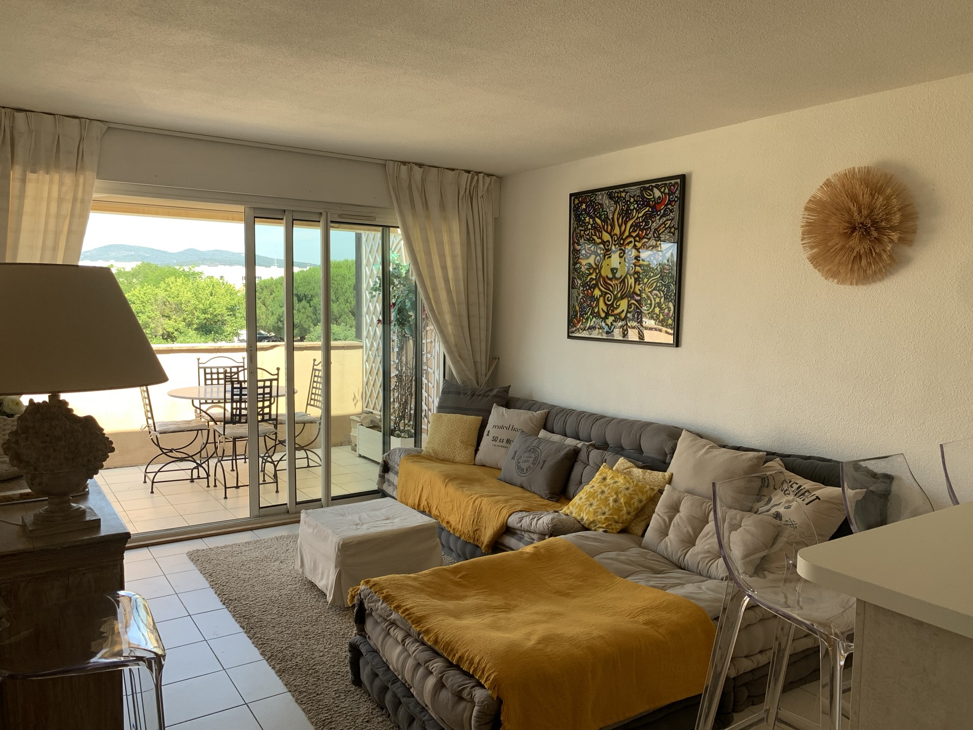 Golfe de Saint Tropez, appartement 60m2 avec terrasse vue mer. 2 chambres pour 5 personnes, entièrement climatisé en résidence privée avec piscine lagon, tennis et accès direct à la plage à pied. Commerces à proximité.